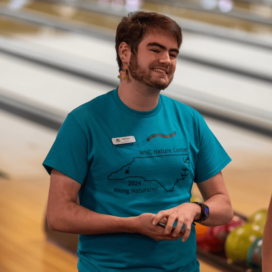 I have lived in Asheville my whole life and have been coming to the Nature Center since I was younger than I can remember. My sister loves wolves, so we would come see the gray wolves – Jenna and Shalimar (here from 2007-2015). I deepened my involvement when I became a Young Naturalist during my high school years, from 2018 to 2022. Last year was my first year interning at the Nature Center as a Co-leader of the Young Naturalists program. This year, I am considered “seasonal staff.” I’m excited to be on staff and continue my involvement with the Young Naturalists program.