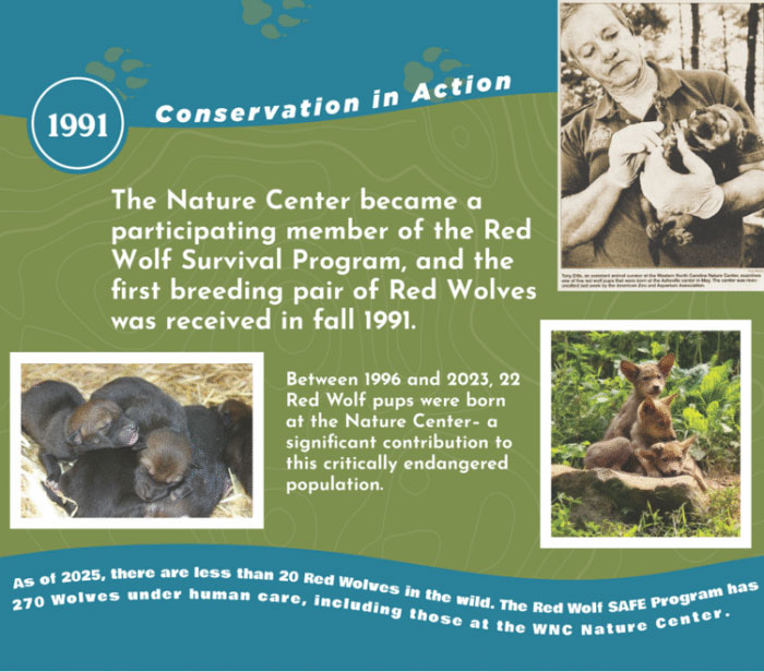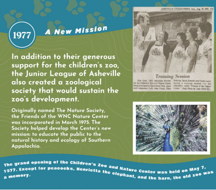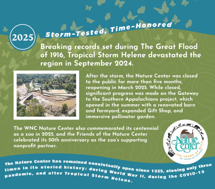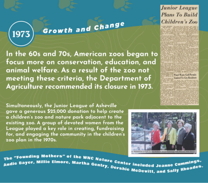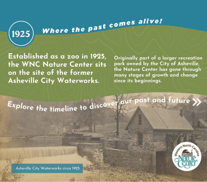 Over the course of 2025, we’ll be highlighting key moments in the WNC Nature Center’s history by sharing stories, news articles, photos, and memories. Be sure to follow us on social media for trivia and fun photos about our history, along with invites to special celebrations, themed educational programs and activities, and fundraising events.