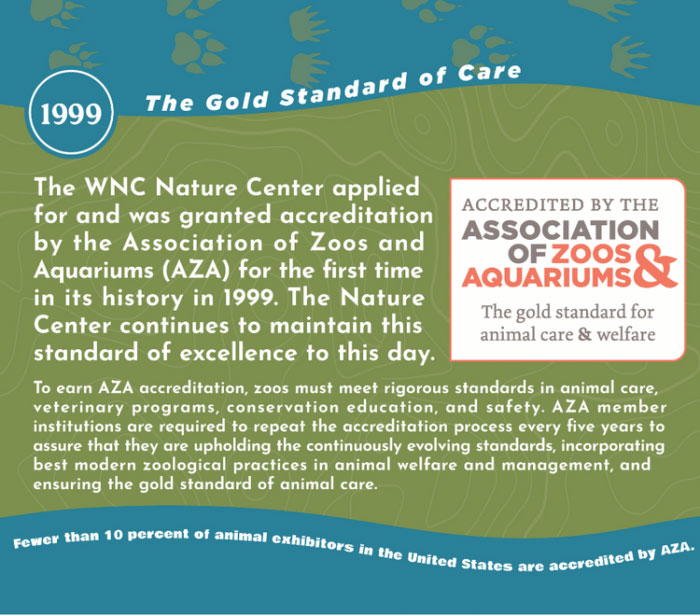 Since that time, the Friends of the WNC Nature Center and the WNC Nature Center have worked hand in hand to support the animals, education programs, and conservation initiatives of the Nature Center.