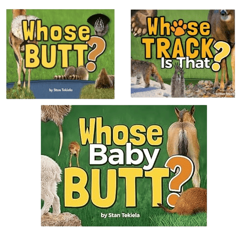 The Whose Book Series contains three different books: Whose Butt, Whose Track, and Whose House. In each book you’ll be presented with the track or rear of an animal for you to guess who it belongs to. After guessing, flip the page to find out if you were right or not!